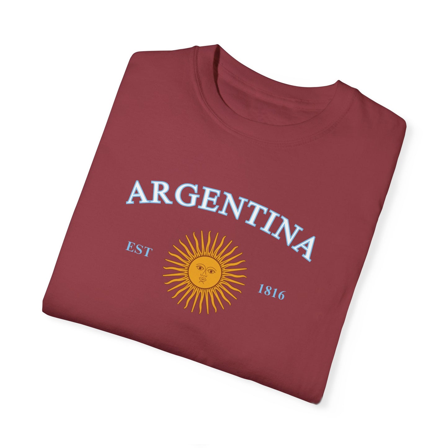 ¡Lleva con orgullo la esencia de Argentina con nuestra exclusiva remera "Argentina EST 1816"! Este diseño único celebra el orgullo nacional con el sol emblemático de nuestra bandera, símbolo de la libertad y el espíritu argentino. Con una combinación perfecta de estilo y tradición, esta remera es ideal para todos los que sienten un profundo amor por su tierra natal.